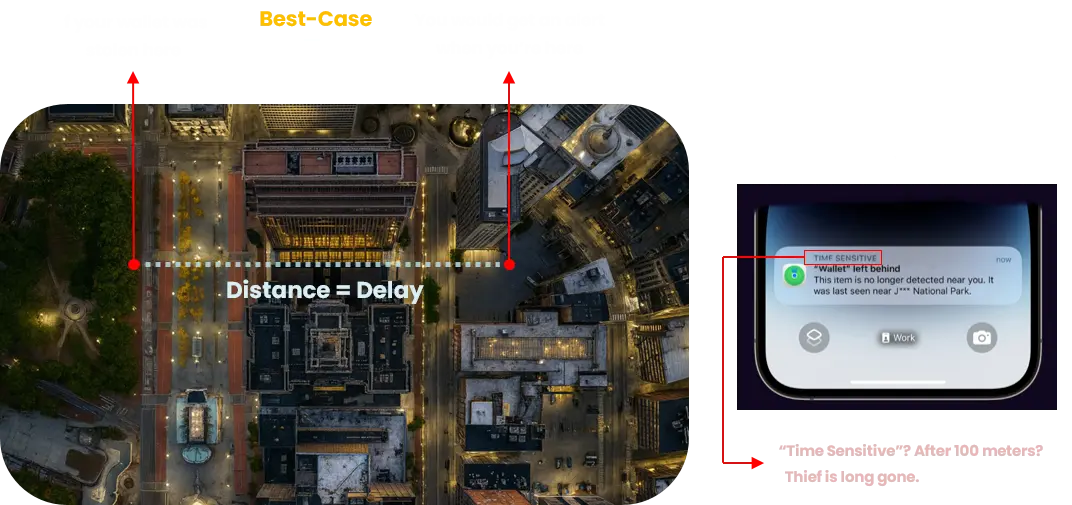 Instant, reliable item tracking worldwide, with real-time movement and theft alerts, works even where UWB doesn't.